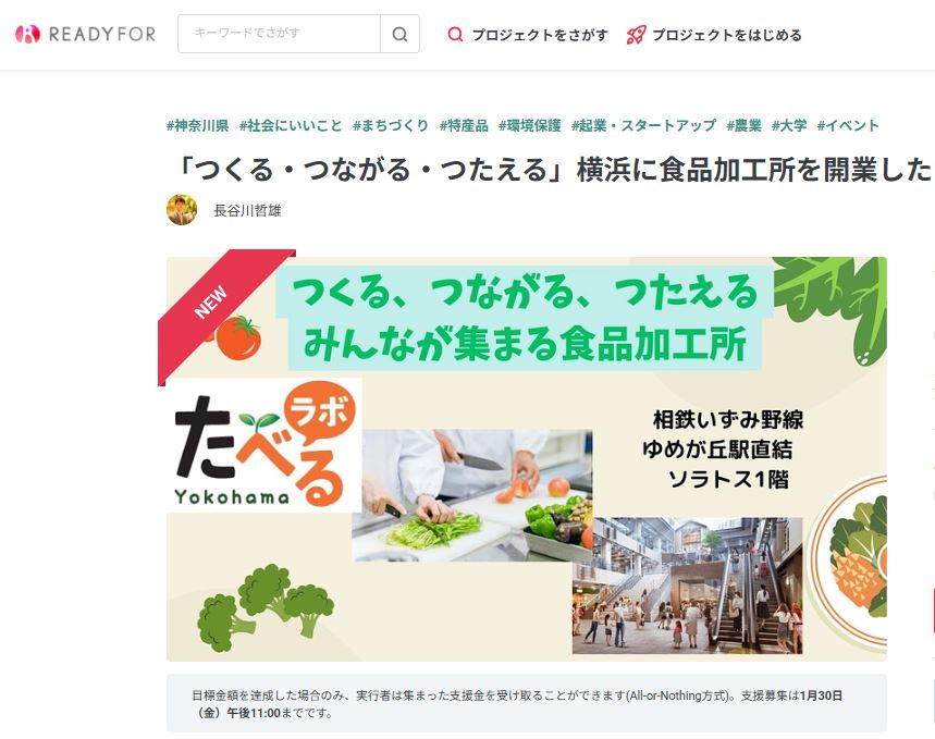 たべるラボ開業にあたり、現在クラウドファンディングに挑戦中です。